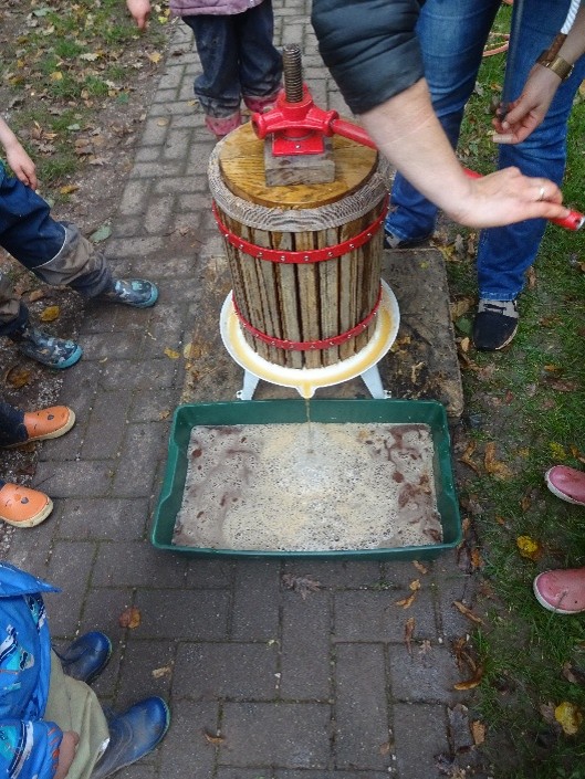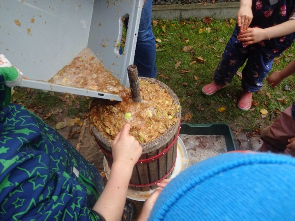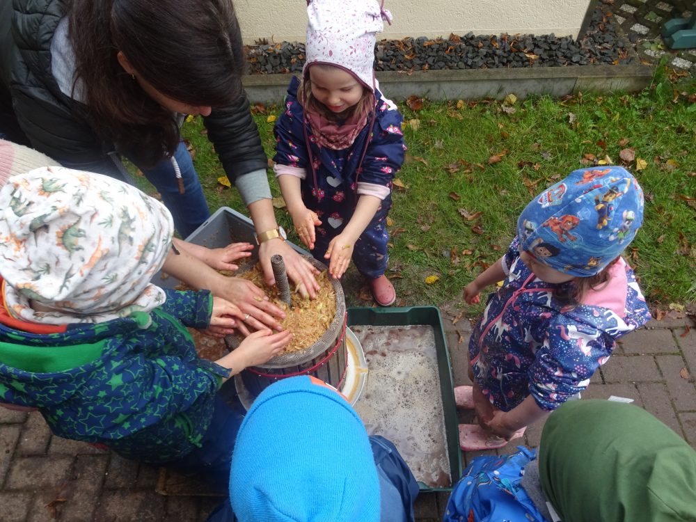 - Gemeinsam drehen – und der Saft kam heraus!